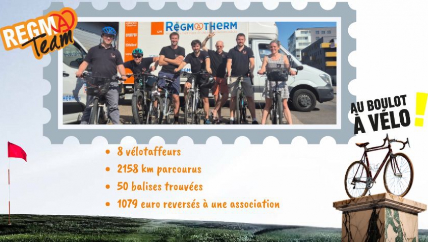 Cette année encore, la Regmateam a participé au challenge "Au boulot à vélo" tout au long du mois de juin. Et elle a bien pédalé, puisqu'avec ses 8 vélotaffeurs, elle a parcouru 2158 km et a trouvé les 50 balises cachées dans l'Eurométropole. Pour chaque km parcouru, Regmatherm a reversé...